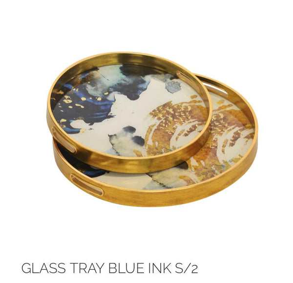 This text can be used to share information about your brand with customers.Glass Tray Blue Ink S/2